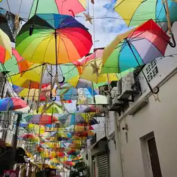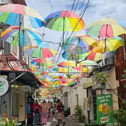 Hidden in the Art Street of George Town, Penang is a colorful "Umbrella Lane", which has become a popular must-visit attraction for internet celebrities in recent years. The sky above this alley is filled with colorful umbrellas. The sunlight shines through the umbrellas, making the entire alley seem to have entered a dreamlike colorful world, making it especially photogenic.