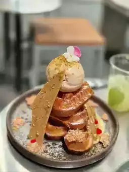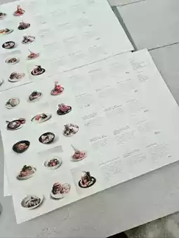 There are many menus of drinks, bakery, waffles and food to choose from.