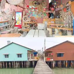 George Town, Penang, Malaysia is a world-famous tourist resort city. Every day, thousands of tourists come here for sightseeing and vacation. There are many Chinese cultural heritage sites in George Town, Penang that are included in the World Cultural Heritage List. This time, we will introduce a world cultural heritage site that is a famous local photo-taking spot: Li Bridge. Free to visit and take photos, no tickets required. Close to the shipping terminal and bus station, transportation is very convenient. This is a century-old wooden house village and sea bridge attraction. It was established a hundred years ago when the first generation of Chinese immigrants came to George Town, Penang, Malaysia. The wooden houses and century-old wooden bridge in the sea are still preserved. Very suitable for photography📸, very photogenic. It is one of the must-see attractions when visiting George Town, Penang.
