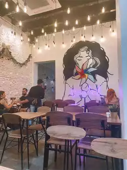 Just beside paid parking area, this cafe is quite famous. The ambiance was amazing. I love their mojito drinks and grill chicken!