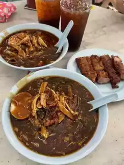 Right next to the temple, a hidden gem kopitiam was the perfect spot for lunch. I had a bowl of lor mee, a comforting dish with thick noodles in a rich, flavorful gravy topped with braised eggs and crispy shallots. A must-try for noodle lovers! 🥢🔥