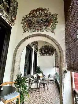 After settling in Penang, this and characteristic mansion is covered, using a large number of European iron columns and parquet tiles incorporating Chinese carvings, and was selected as a filming location for Indochina, Crazy Asian Rich and several films
