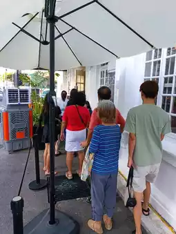 Eager patrons waiting patiently for the doors to open at ten sharp.