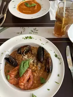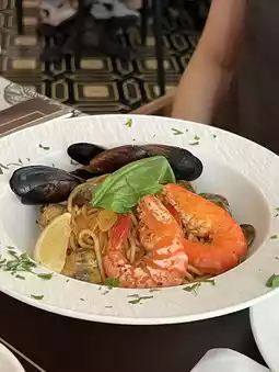 The seafood risotto was a standout: creamy, rich, and deeply flavorful with every bite. The arborio rice was perfectly cooked, soaking up the seafood-infused tomato base like a dream. Topped generously with fresh prawns, mussels, and a sprinkle of parmesan, each bite gave off that comforting umami punch. The fresh basil added a nice herbaceous lift too.