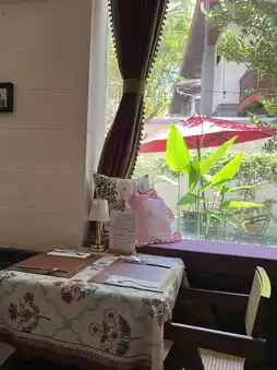 Had a lovely lunch in a beautifully serene, plant-themed setting—think botanical prints and calm earthy tones, perfect for a slow, relaxing meal.
