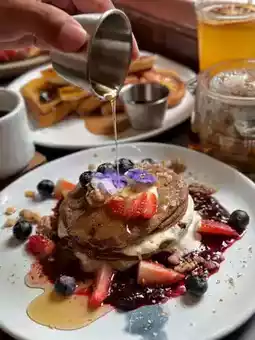 • Avocado Smash: Mashed avocado seasoned with lemon and beetroot smear, served on sourdough bread and topped with a poached egg and cherry tomatoes.