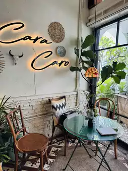Tucked behind leafy vines and charming greenery, Cara Caro Cafe is like walking into a hidden garden oasis. The moment I spotted the handwritten wooden signboard, I knew I was about to discover something special. There’s something therapeutic about sipping coffee while being surrounded by plants and tiled floors that whisper stories from the past.