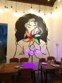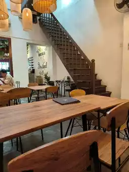 The interior has such a soothing aesthetic—wooden furniture, rattan lamps, and a soft, welcoming glow. It’s definitely Instagram-worthy but also very chill. Perfect spot if you’re looking for a mix of good food and pretty corners to relax in.