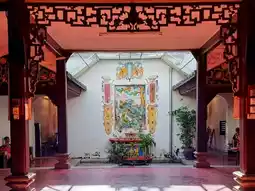 The temple houses an impressive collection of intricately crafted wooden ceremonial tools, dragon and lion dance props, and religious altars, showcasing exquisite craftsmanship that is sure to amaze visitors. On Lu Ban's birthday, the temple comes alive with vibrant street parades, adorned with lanterns and decorations, creating a festive and lively scene.