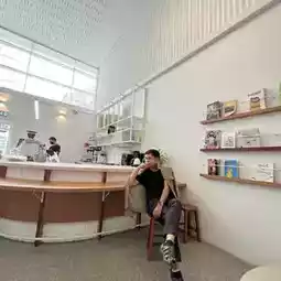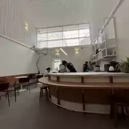 This is a café and bookstore combined with a souvenir shop, all in one place. It's truly a one-stop destination! The atmosphere is fantastic, and the minimalist design is perfectly executed.