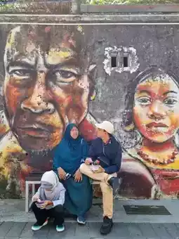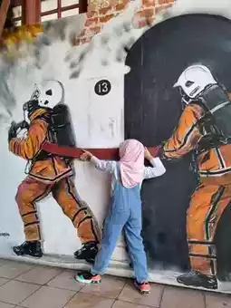 GEORGE TOWN, Georgetown, Penang, Malaysia is another landmark that anyone who visits Penang must stop by to take a picture. The George Town building is not far from the Street Art. Walk around the city, take pictures, and buy food on the side of the road. It's so chill. But when we walked, it was at night. 🙂