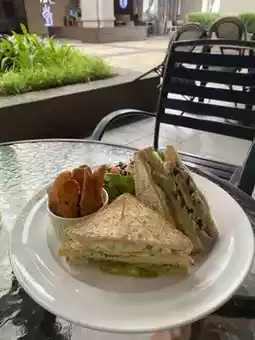 The interior features floral wallpapers, lace curtains, and cosy seating that invoke a quaint countryside tea room—perfect for leisurely conversations or indulgent solo tea time we ordered their avocado sandwich which was such a delight stack of sandwich, paired with nicely fried wedges!