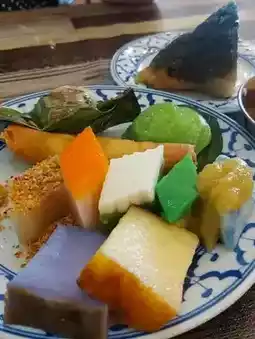 The Kuehs here melt in your mouth and have just the right amount of flavor, making them incredibly delicious. The Pulut Inti coconut ribbons have a salty-sweet flavor, imbued with a distinct coconut sugar aroma. The purple Kuih Bengka has a chewy texture and is soft and fluffy.