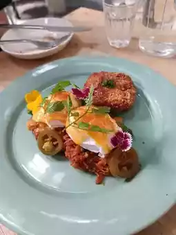 🍳 We ordered the Mojo Pulled Pork Benedict, and it was a total win. The poached eggs were done to perfection — soft, silky, and bursting with golden yolk. The pulled pork was tender, juicy, and beautifully seasoned, sitting on a crisp base with a side of fried macaroni that added a playful crunch. Every bite was comforting yet elevated — a classic dish done with finesse.