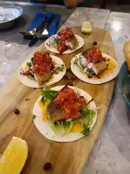 We didn’t go for the oysters this time, but the rest of the menu truly impressed us. The fried sea bass taco is a must-try — crispy, tangy, and refreshing with its chopped tomato topping. The clam soup was another highlight; the clams were fresh, the broth light yet flavourful. We also ordered the crispy pork belly and salmon, both well-prepared and nicely seasoned.