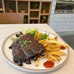 Cafe vibe with warm ambiance. I was served by this sweet and friendly waitress and asked her to recommend their specialty. If my stomach allows I would have try more😆. So decided to try this Pork Ribs since not many cafe offer this dish. The Ribs was superb, it match so well with the side salad, sweet、 sour and tangy. The cappuccino was good too.#mytripvlog #2023travelwish #tripblazers