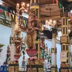 #Malaysia attractions Arulmigu Sri Mahamariamman Temple in Georgetown was built in 1833. It is the oldest Hindu temple in Penang, Malaysia. The statue inside the temple is the place where the statue of the god Subramaniam is enshrined, which is decorated with precious gems such as diamonds and emeralds. It is very beautiful. The area above the front entrance arch is decorated with intricate sculptures of Hindu gods and goddesses.
