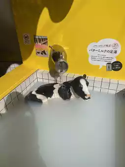 You can also enjoy your food while soaking in the milk-colored foot bath with cute calves!