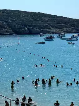 Comino, a small island in Malta, is home to the Blue Lagoon, a true gem of the Mediterranean with its shimmering blue waters. The moment you step off the boat, you're greeted by a scene straight out of a dream vacation: turquoise waters and pristine white sands. Sitting on a sunbed under a parasol, the view itself offers the perfect relaxation 🌊🌴☀️