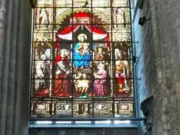 The interior of the church is adorned with beautiful paintings, carvings, and stained glass. Highlights include the "lantern tower," a transparent glass tower that lets in natural light, an organ created by Aristide Cavaillé-Coll in 1856, and a stained glass mural depicting the Virgin Mary and Jesus Christ.