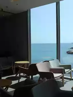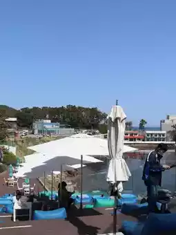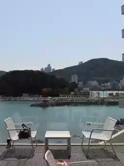 On the rooftop, there are bean bag seats where you can lie down and relax while gazing at the Busan sea.