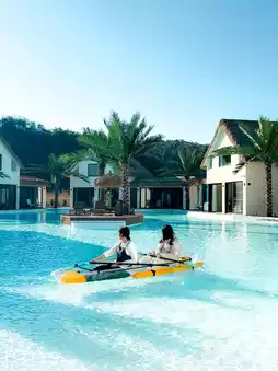 Enjoy kayaking in the gorgeous pool that rivals the beauty of 'Single's Inferno,' and relax in the private heated pool to warm up and rejuvenate 🤍