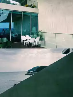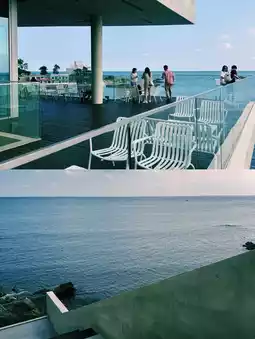 The interior of the cafe is modern yet cozy, making it a great spot to chat with friends or quietly jot down travel notes alone. At sunset, the sky and sea merge into a crimson hue, making it the perfect place to capture sentimental photos.