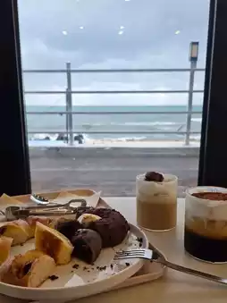 ✔️A spacious and comfortable cafe where you can relax and enjoy. The large windows offer a stunning view of the ocean, allowing you to enjoy the sea in a serene atmosphere.