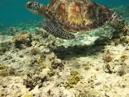 ① 100% chance of encountering a sea turtle! Be careful not to touch the sea turtle! Of course. Don't step on the coral.