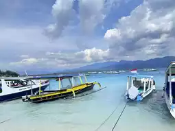 These three islands lined up side by side are called Gili Air, Gili Meno, and Gili Trawangan in order of proximity to the main island of Lombok.
