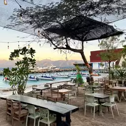 That's why there are many restaurants, bars, and cafes along the beach road,