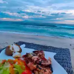 Food!!! For those that like seafood this is paradise, huge prawns, fresh fish and simple salads were what they were catching and selling in the restaurants. the tables and beenbags were placed along the waterfront so you could watch the pink sunsets.