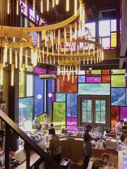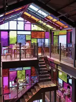 One side of the 3-story building is made of colorful stained glass. The interior of Gimpo's large cafe 'Little Paulo' is decorated with various European-style paintings! Little Paulo, a large cafe in Gimpo with a unique interior, also makes its own bakery in the cafe, so you can enjoy coffee and delicious bread together!