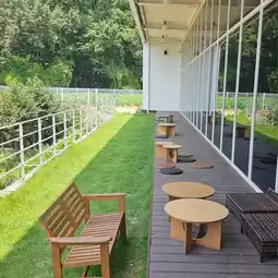 Gahyeri Cafe boasts a spacious indoor and outdoor garden. It also has a campsite-like atmosphere. It's pet-friendly, making it a great place to visit with your pup. It also offers a variety of bakeries, desserts, and beverage options, making it a popular Gimpo cafe. The second floor offers a quiet, unobstructed view. It's also a great photo spot.