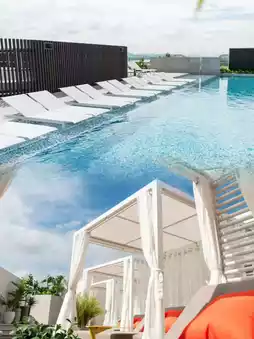 The rooftop infinity pool faces the sea, making it feel like you're swimming in the ocean. The gym is equipped with advanced equipment, so you can stay active even on vacation. The spa center offers amazing massage services, with professional techniques to relax your body and mind.