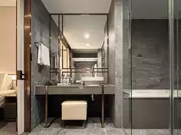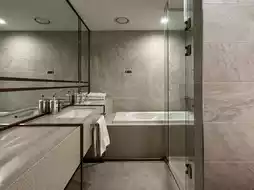 Each bathroom has a bathtub, shower booth, toilet, and sink, so it's really convenient.
