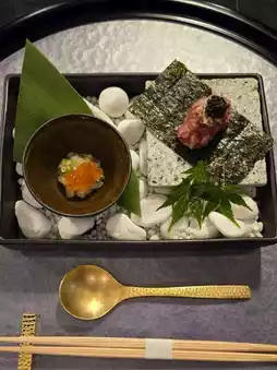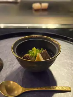 ◼️ Shrimp simmered in yuba, braised Japanese black beef, deep-fried tofu, and Japanese black beef meatballs in oden style
