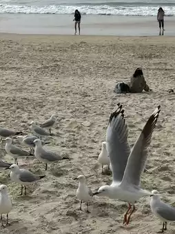 No visit is complete without feeling the sand between your toes. We walked along the famous surf beach, a wide, golden stretch perfect for a stroll. The scene was dotted with lively pigeons (and the ever-hopeful seagulls!), scavenging for crumbs and adding a charming, animated energy to the beachside atmosphere. They strutted along the promenade, completely at home against the backdrop of crashing waves and soaring skyscrapers.