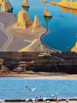 Special landscape: Yardang landforms reflecting in lake water