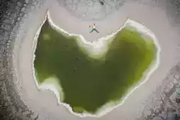 From a drone’s aerial view, Emerald Lake reveals the earth’s colorful secrets. Countless salt ponds, like carefully cut emeralds and sapphires, scatter across the Gobi Desert. In perfect sunlight, the blues and greens blend vividly through the lens. The shallows are tender green, the lake’s center is imperial green, and some salt ponds shimmer cobalt blue, reflecting the sky.