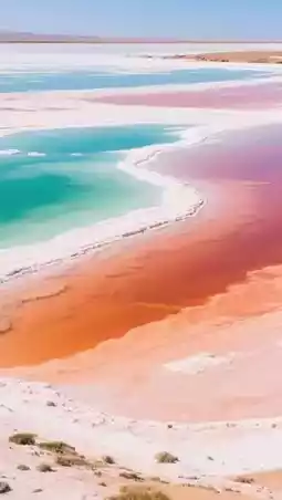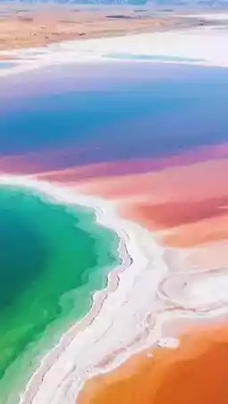 - Actually **evaporation ponds for potash fertilizer production**, showing colorful patterns due to different microorganisms and mineral contents