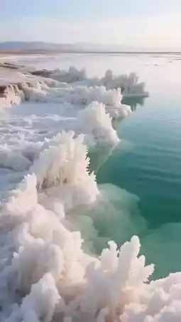 - At the edges of the dried salt crust, you can see various “salt flowers”—clusters of salt crystals