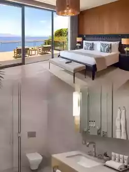 🏠 The hotel's architecture blends local characteristics with modern aesthetics. The cream-colored buildings are arranged harmoniously, complementing the surrounding blue sea and sky. The interior design of the rooms is exquisite and luxurious, with every detail showcasing quality. From the soft bedding to the carefully selected furniture and smart amenities, every moment is filled with ultimate comfort and care.
