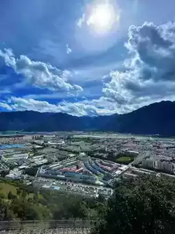 When the first ray of sunlight pierces through the clouds, the whole of Nyingchi instantly awakens. The light pours like gold, first crowning the snow mountains with a dazzling crown, then flowing along the ridges, igniting the layered forests of the Nyang River Valley. Pale yellow, ochre red, and dark green intertwine like a palette spilled by the gods. As the mist disperses, the panoramic view of Nyingchi unfolds like a paradise: the Nyang River is as blue as silk, barley fields shimmer with green, Tibetan-style houses are scattered throughout, and distant snow peaks shine brilliantly under the blue sky.