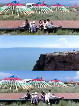 On Day 1, we encountered the Qinghai Lake Cycling Race🚲 with road closures, so we circled Qinghai Lake to visit the viral check-in spot "Cliff"