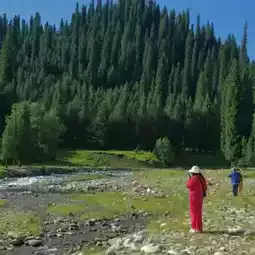 The grassland scenic areas in Ili are mostly located in east-west valleys, but Kurdening in the eastern mountainous area of Gongliu County, Ili, is situated in a north-south valley. It stretches about 14 kilometers long and is about 1 kilometer wide at its widest point, with an average valley floor elevation of 1500 meters. 'Kurdening' means 'crossing ditch' in Kazakh.
