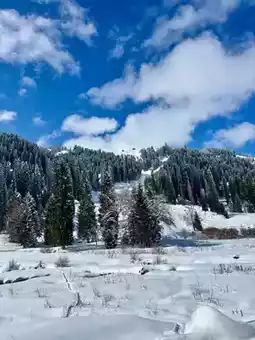 In March, Ili still holds the chill of winter. Fresh snow blankets the grasslands, forests, and mountains as if nature has spilled a box of watercolors—leaving only pure white, blue, and gray between heaven and earth.