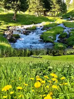 ✅ Hemu: A fairytale-like village with bridges, streams, curling smoke, wildflowers, and starlit wooden cabins🏠, exuding a primitive and natural charm.