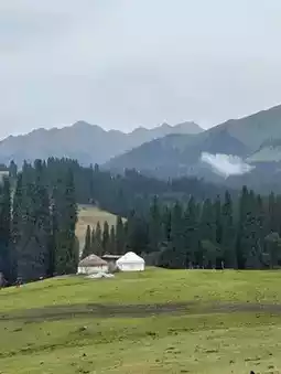 Kazakh yurts with smoke rising from chimneys add a rustic, authentic charm.