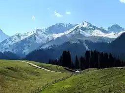 Kuerdening Scenic Area is located in Gongliu County, Ili Kazakh Autonomous Prefecture, Xinjiang. Its uniqueness lies in the fact that while most mountain valleys descend along the mountain slopes, this wide valley runs parallel to the snow-capped mountains. It is a north-south oriented mountain valley, approximately 14 kilometers long and up to 1 kilometer wide, with an average elevation of 1,500 meters at the valley floor. In 1984, Kuerdening Scenic Area was designated as the Autonomous Region's Xueling Spruce Nature Reserve. The reserve is home to over 1,000 species of higher plants, 146 species of terrestrial vertebrates, and 196 species of insects. The peaks in Kuerdening Scenic Area range from 3,000 to 4,200 meters, with the highest peak being Kabanbay Peak, which is snow-covered year-round. The climate is mild and humid, with lush greenery, offering scenic views throughout all four seasons.